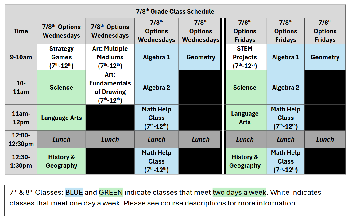 7th/8th Grade Science: This class meets on both Wednesdays and Fridays, and is for 7-8th graders.